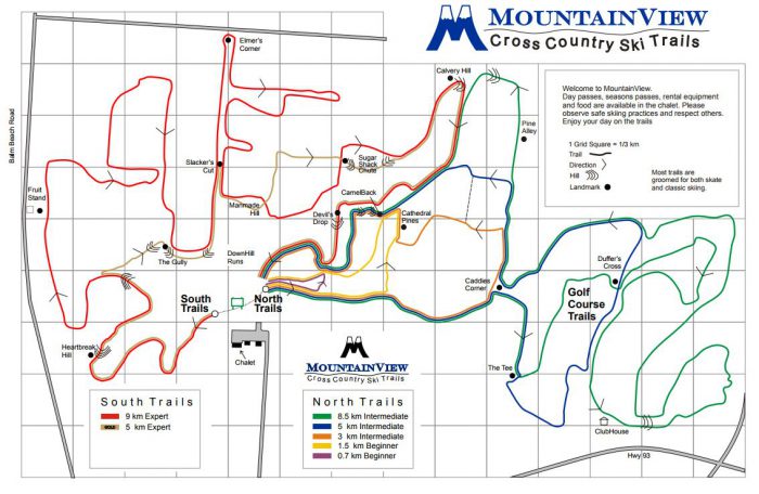 Facilities – Parking, chalet, rentals, snacks, bathrooms, lessons (downhill skiing is closed)