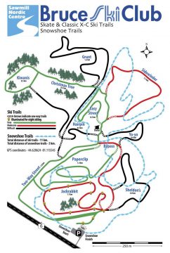 Likely the most popular Nordic ski centre in S.W. Ontario is Sawmill, outside of Hepworth. Here resides an active club that takes good care of the 11 km of Cross-Country and Skate skiing trail they offer.
