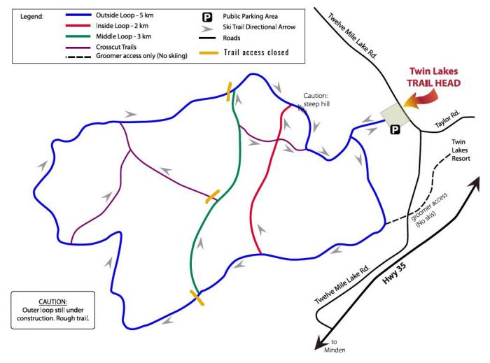 For a quick loop, Nordic skiing on the Twin Lake Trails will stretch your legs and give you a break from driving. Though short in length, it is well maintained and scenic. Tracks were set and the loops are wide enough to skate ski all of them.